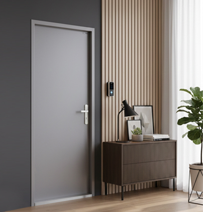 Steel doors with wooden texture finishes for enhanced aesthetic appeal.